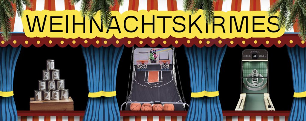 Jeden Freitag & Samstag bis Weihnachten verwandeln wir unseren Backyard in eine kleine, Kölsche Winterkirmes. Wir haben jede Menge Games für euch am Start, die ihr im Battle Mode gegen eure Besties oder solo gegen eure eigenen Nerven zocken könnt. Freut euch auf tolle Sofortgewinne, oder bestraft die Verlierer mit einem Strafschnaps. Wer einen Highscore knackt, darf sich über besondere Preise freuen. Und das Beste: Jede Spielteilnahme landet automatisch in unserer großen Tombola.
